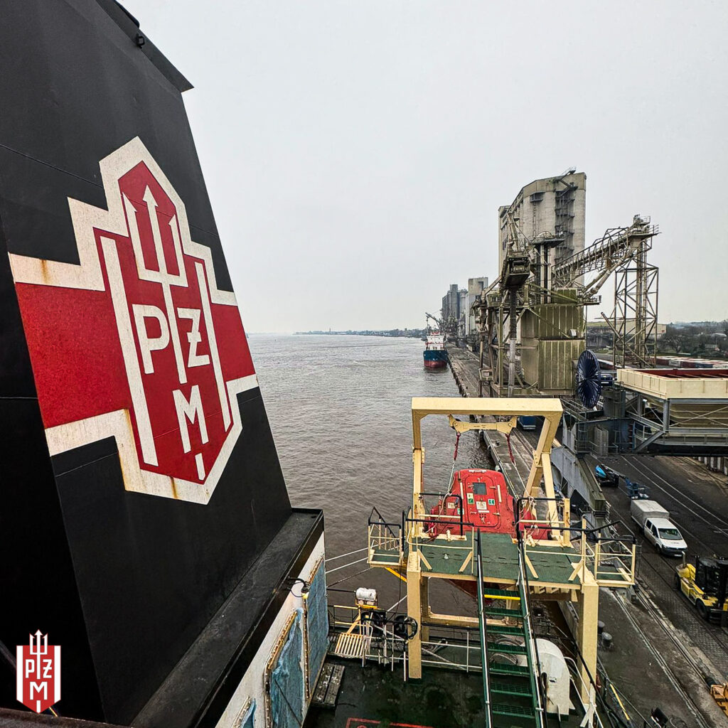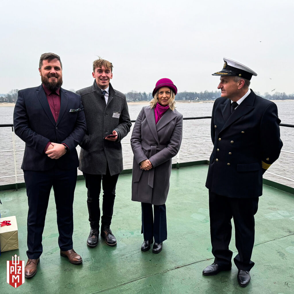 O tym, że armator ma dla mnie taką zaszczytną propozycję dowiedziałam się w listopadzie 2023 roku. Przewodnicząca Klubu Matek Chrzestnych – Miłosława Błaszyk-Zjawińska zapytała się mnie wówczas, czy chciałabym zostać Matką Chrzestną statku „ Tczew”. Oczywiście się zgodziłam, to wielkie wyróżnienie, tym bardziej, że ta grupa statków jest mi bliska, z racji pracy w Dziale Ekonomicznym, prowadzę ich umowy bareboat i wyniki statków -wiem o nich dużo. Chrzciny miały odbyć się wiosną, wtedy miał przypłynąć do Europy. Część statków z tej grupy nie miała ceremonii w Chinach – w stoczni- przy odbiorze, lecz w późniejszym czasie (w tym przypadku po siedmiu latach) w portach europejskich. Było to dla mnie wygodne rozwiązanie, pomyślałam, że mam odpowiednio dużo czasu na znalezienie odpowiedniego stroju i kapelusza na wiosenną porę. Tymczasem, kiedy nastała wiosna, wszystko już było przygotowane „Tczew” ciągle nie przypływał do Europy. Minęło lato, zaczęła się już jesień a ja dalej czekałam. Byłam cały czas w kontakcie z operatorem statku, ale on nie miał dobrych wieści. Mój przyszły chrześniak wciąż pływał na południowej półkuli. Wtedy stwierdziłam, że trzeba przygotować się ze strojem na jesień lub zimę. Znowu więc szukałam odpowiedniego kapelusza, tym razem już w wersji zimowej. W ten sposób byłam już gotowa na wszystkie pory roku. W końcu w grudniu pojawiło się światełko w tunelu – płynie z ładunkiem do Danii!!! Hurra! – był grudzień 2024 roku. Ale okazało się, że nie będzie jak tam dotrzeć, wyładunek był bezpośrednio w elektrowni i w dodatku był to okres świąteczno-noworoczny, wtedy operator pocieszył mnie, że prawdopodobnie statek będzie jeszcze przed powrotem do Stanów zatrzymywał się w Niemczech lub Holandii. Ucieszyłam się, że może w końcu się uda. I wkrótce okazało się, że w styczniu 2025 roku będzie się ładował drewnem w porcie Brake w Niemczech – nareszcie. Zmęczona tym długim wyczekiwaniem, ale jednocześnie podekscytowana ruszyłam w podróż 13 stycznia 2025 roku. Martwiłam się trochę o pogodę, ponieważ zawitała akurat do nas śnieżna zima i było chłodno, ale byłam na to już przygotowana z ciepłym płaszczem i kapeluszem. Chrzest odbywał się następnego dnia na pokładzie statku, przy nadbudówce, wszystko było przygotowane – butelka szampana wisiała przygotowana na sznurku. To była kameralna, ale piękna i wzruszająca uroczystość. Starałam się jak najlepiej sprostać zadaniu. Towarzyszyła mi sama Przewodnicząca Klubu Matek Chrzestnych. Emocje związane z ceremonią chrztu były ogromne, nawet nie zdawałam sobie sprawy, że tak to będę przeżywać. Ale wszystko poszło dobrze, po wygłoszeniu krótkiej formuły przecięłam sznurek i butelka z szampanem rozbiła się o komin. Odetchnęłam z ulgą. Każda marzy, aby ta butelka rozbiła się za pierwszym razem, aby nie przynieść statkowi pecha. Gdy usłyszałam oklaski załogi poczułam dopiero jak spływa ze mnie całe zdenerwowanie. Potem było już tylko bardzo przyjemnie. Zdjęcia, uśmiechy, wręczanie pamiątek – to były bardzo miłe, wzruszające i radosne chwile. W towarzystwie kapitana Ryszarda Mogielnickiego z dumą zwiedzałam mojego chrześniaka. Obecnie na bieżąco śledzę jego rejsy. Wysyłam życzenia świąteczne i mam nadzieję, że przypłynie gdzieś do Polski – może do Polic lub Szczecina, żebym mogła go jeszcze raz odwiedzić.